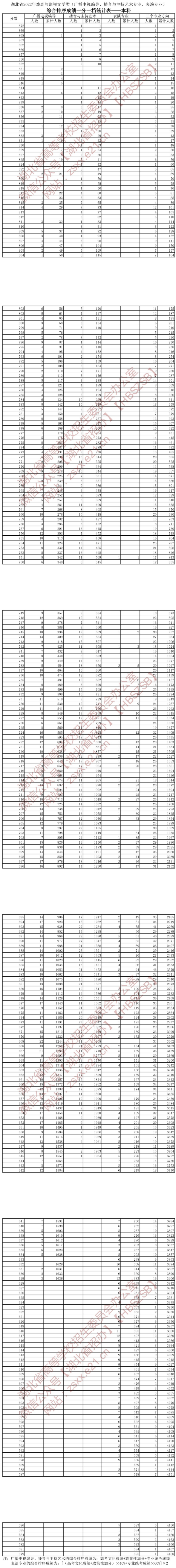 湖北省2022年戲劇與影視文學類(廣播電視編導、播音與主持藝術專業、表演專業)綜合排序成績一分一檔統計表(本科)