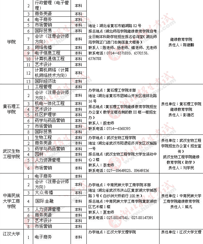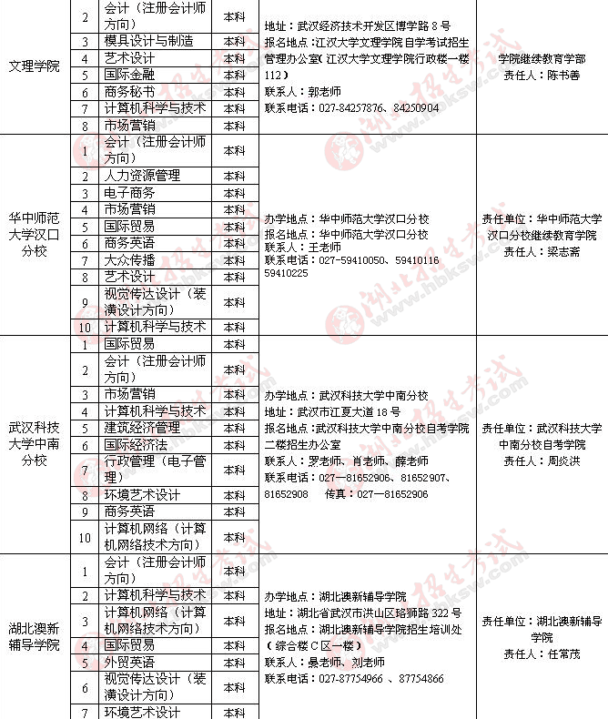 湖北省自學考試2009年全日制助學班舉辦學校及專業公示
