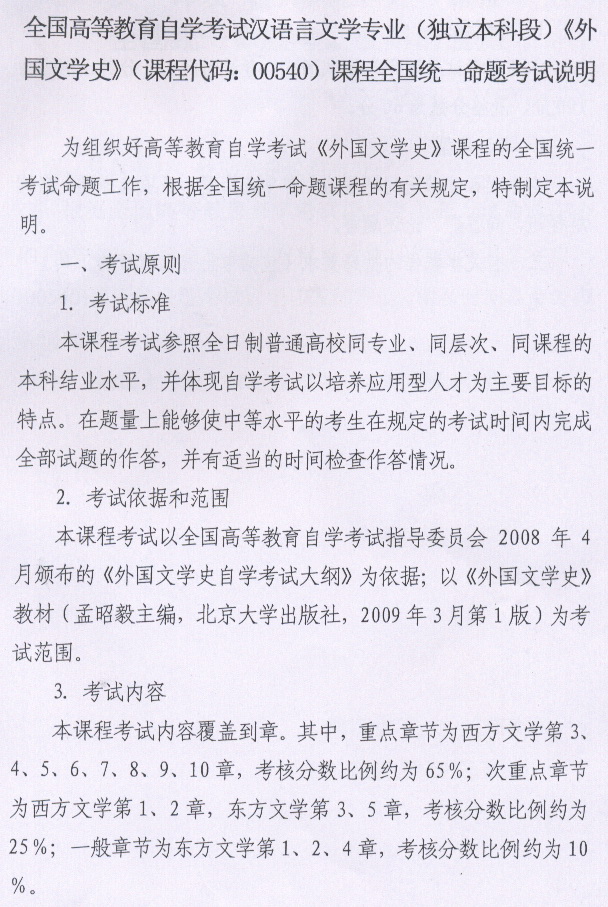 自考《外國文學(xué)史》課程全國統(tǒng)一考試命題說明