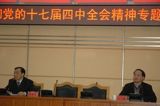 12月23日上午,省委宣傳部副部長余立國來我院作學習貫徹黨的十七屆四中全會專題報告,全院干部職工及院屬單位負責人參加報告會。報告由院黨委書記、院長江暢主持。