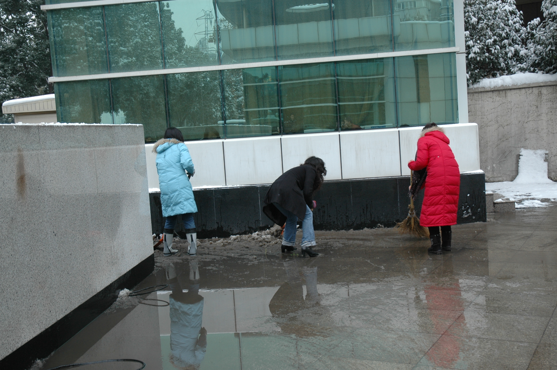 1月6日上午8點10分,院機關干部職工利用上班前時間打掃辦公樓前樓后和馬路邊積雪,經過近半個小時的打掃,門前積雪被清除干凈,保障了出入人員和車輛及過往行人的安全。