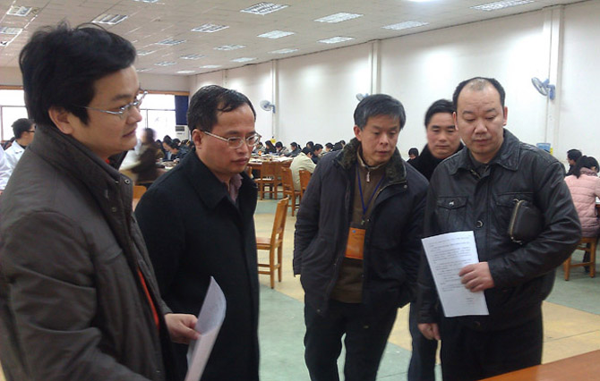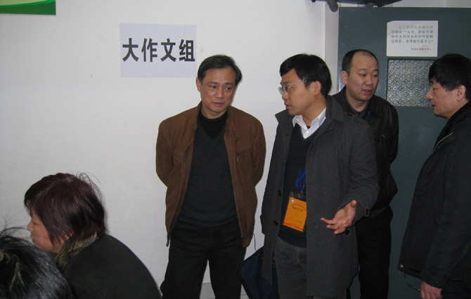 2月20日,湖北省教育考試院院長助理劉曉林(左一)到華中農業大學評卷點巡視評卷工作
