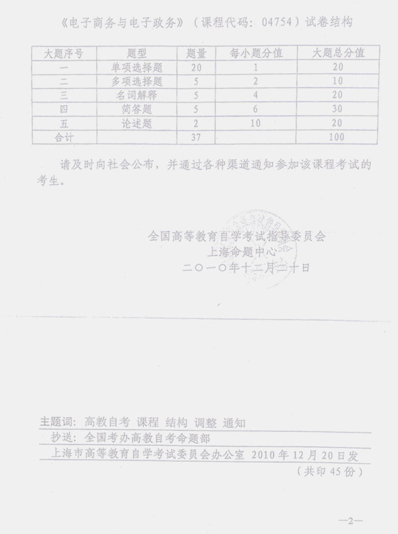 和《電子商務與電子政務》試卷結構的通知