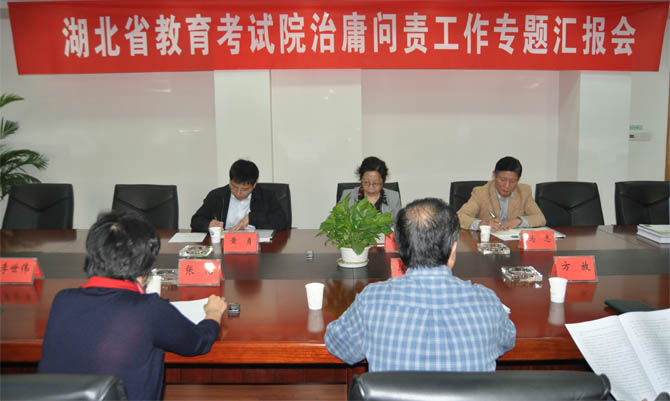 10月13日,省委高校工委、省教育廳治庸問責工作第三督導檢查組在組長周靜副廳長的帶領下,來我院檢查指導治庸問責工作。檢查組與我院各處室和院屬單位負責同志進行了座談,座談會由徐澤貴副院長主持。檢查組還查訪了考生服務大廳,查看了工作資料。