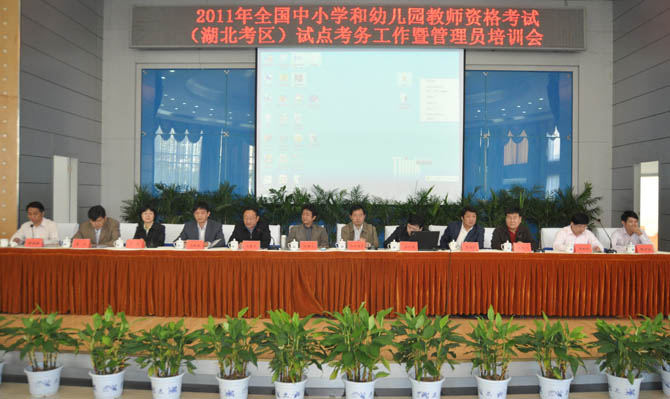 湖北省教育廳副廳長歐陽建平到會發表了重要講話。他說,全國中小學和幼兒園教師資格考試改革試點工作是貫徹《國家中長期教育改革和發展規劃綱要》的重要舉措,是深入推進國家教育體制改革、促進中小學和幼兒園教師隊伍建設的有效途徑。各級教育行政部門要高度重視,切實加強領導。項目考務管理人員一定要努力學習、領會、掌握有關文件精神和要求,確保我省的試點工作安全平穩順利。