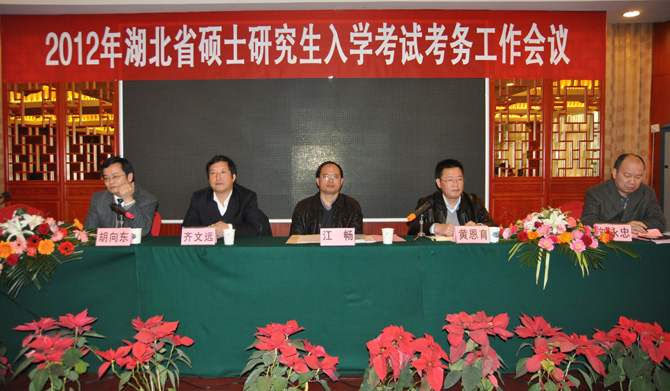 12月6日,湖北省教育考試院在中南財(cái)經(jīng)政法大學(xué)召開2012年我省碩士研究生入學(xué)考試考務(wù)工作會議。省教育考試院黨委書記、院長江暢,副院長黃恩育,中南財(cái)經(jīng)政法大學(xué)黨委副書記齊文遠(yuǎn),省教育考試院高等教育考試辦公室主任胡向東,副主任劉永忠等出席會議。會議由黃恩育同志主持。