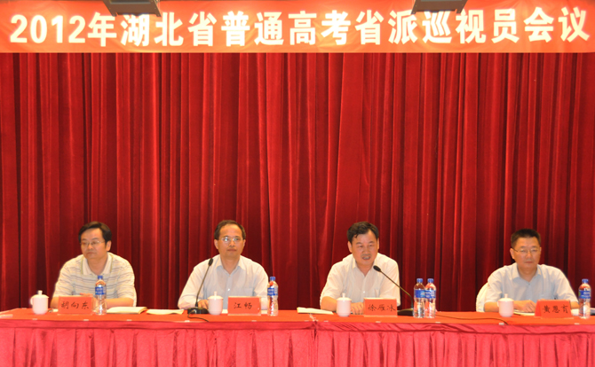 5月29日,省教育廳、省教育考試院召開2012年湖北省普通高考省派巡視員會議。省教育廳副廳長徐雁冰出席會議并作重要講話,會議由省教育考試院黨委書記、院長江暢主持,省教育考試院副院長黃恩育,高考辦主任胡向東出席會議。會議對435名省派巡視員進行了動員和業務培訓。