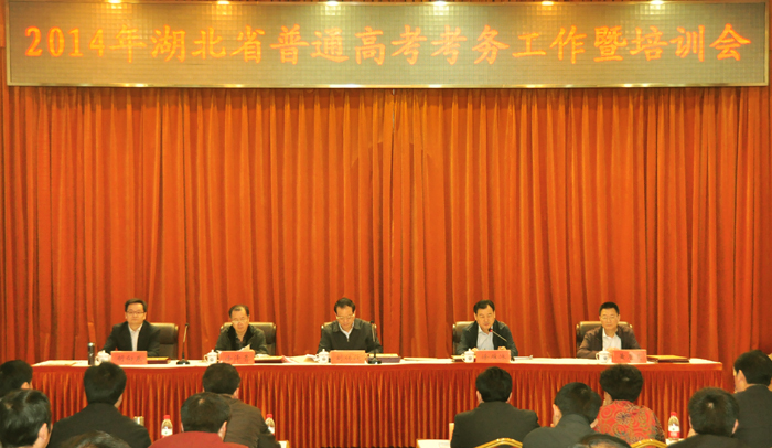4月24日,2014年普通高考考務工作暨培訓會在武漢召開。全省各市、州教育局主要負責同志、分管局長,各市州、縣(市、區)教育考試機構主要負責人及考務干部參加會議和培訓。省委高校工委書記、省教育廳廳長劉傳鐵出席會議并作重要講話。省教育廳副廳長徐雁冰,省教育考試院副院長徐澤貴、黃恩育等參加會議。會議由徐雁冰同志主持。