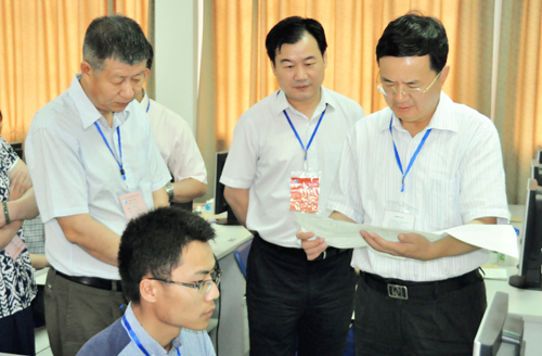 在評卷點,郭生練一行實地察看了評卷現場,認真聽取了評卷學科組工作情況匯報,詢問了評卷工作流程和管理要求,并到中心機房了解評卷工作進展情況。郭生練對評卷教師和工作人員一絲不茍的工作精神表示敬意和謝意。他強調,評卷工作責任重大,使命光榮,評卷高校務必要做好后勤服務,提供優良的住宿、餐飲條件和工作環境,保證評卷工作人員以飽滿的精神狀態,高質量完成高考評卷任務。他要求,評卷工作人員要以高度的政治責任感對待評卷工作,科學嚴格地掌握標準,客觀公正地做出評判,確保評卷安全和質量,向全省人民和廣大考生交出一份滿意答卷。
