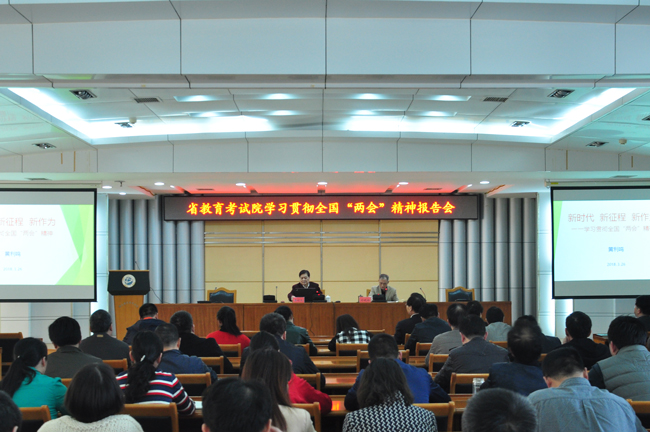 會上,劉曉林對全院黨員干部提出要求:一要進一步強化“四個意識”,把學習好、貫徹好全國兩會精神作為我院當前的一項重大政治任務。二要認真學習、抓好落實,要以輔導報告為契機,掀起一股學習熱潮,結合“兩學一做”學習教育和支部主題黨日活動,把學習貫徹兩會精神與學習貫徹習近平新時代中國特色社會主義思想緊密結合起來,與貫徹落實黨的十九大精神緊密結合起來。積極運用兩會精神武裝頭腦、指導實踐,立足我省教育考試發展實際,穩步推進教育考試制度改革,努力辦好人民滿意的教育考試。