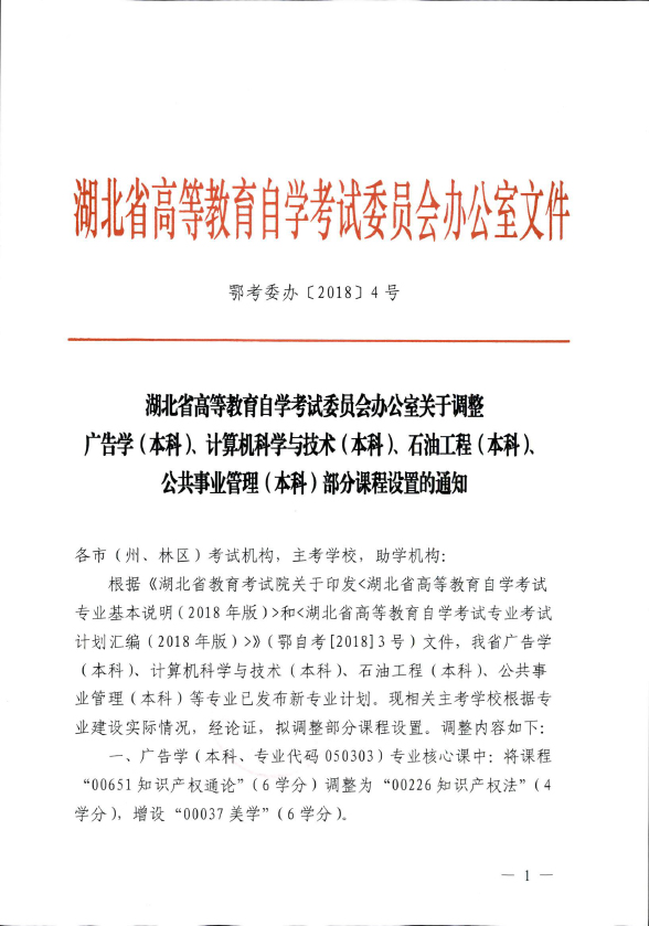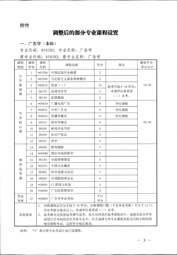 關(guān)于調(diào)整廣告學(xué)(本科)、計算機科學(xué)與技術(shù)(本科)、石油工程(本科)、公共事業(yè)管理(本科)部分課程設(shè)置的通知