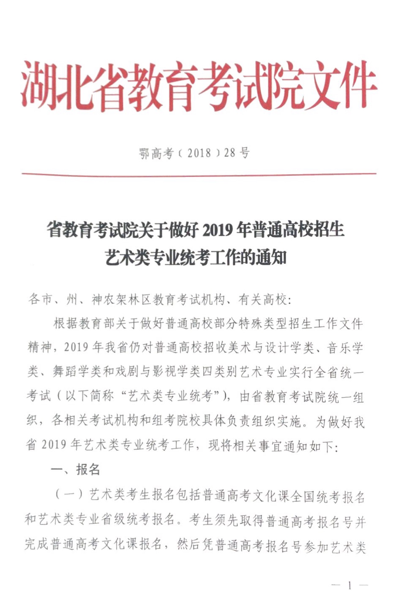 關(guān)于做好2019年普通高校招生藝術(shù)類專業(yè)統(tǒng)考工作的通知