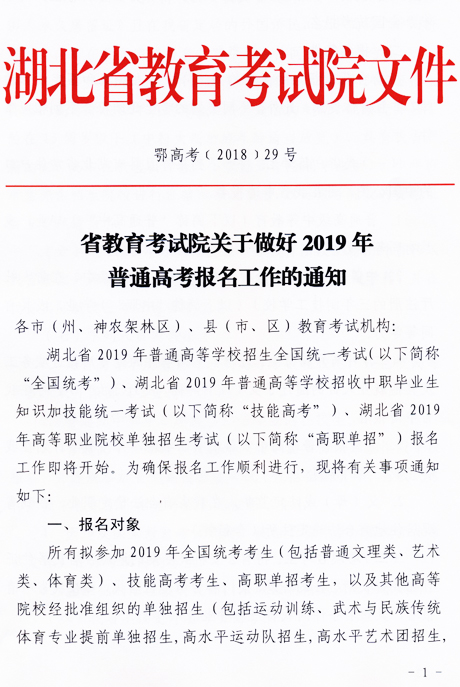發布日期:2018/10/26 來源:湖北省教育考試院