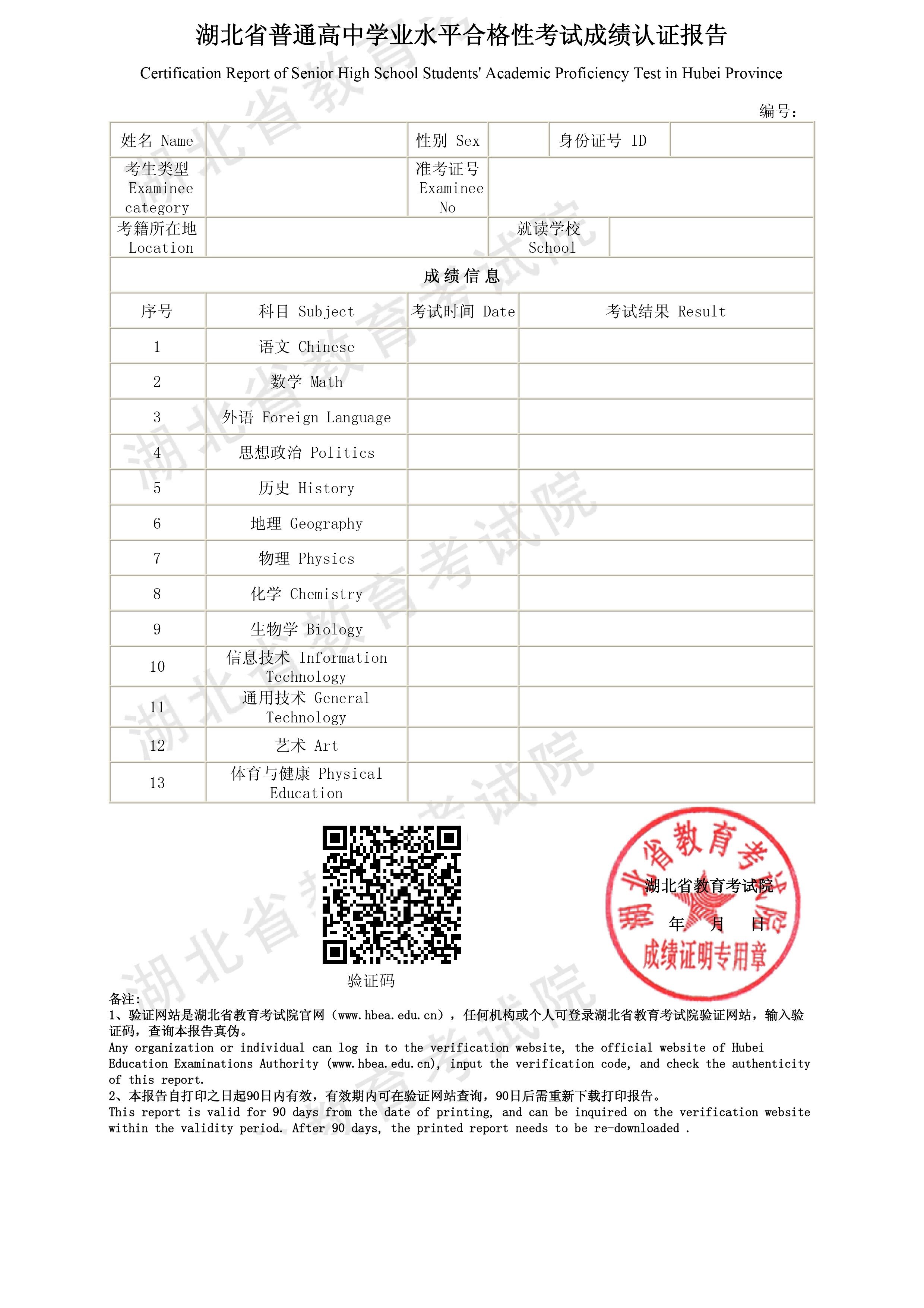 附件:湖北省普通高中學業水平合格性考試成績認證報告(樣表)