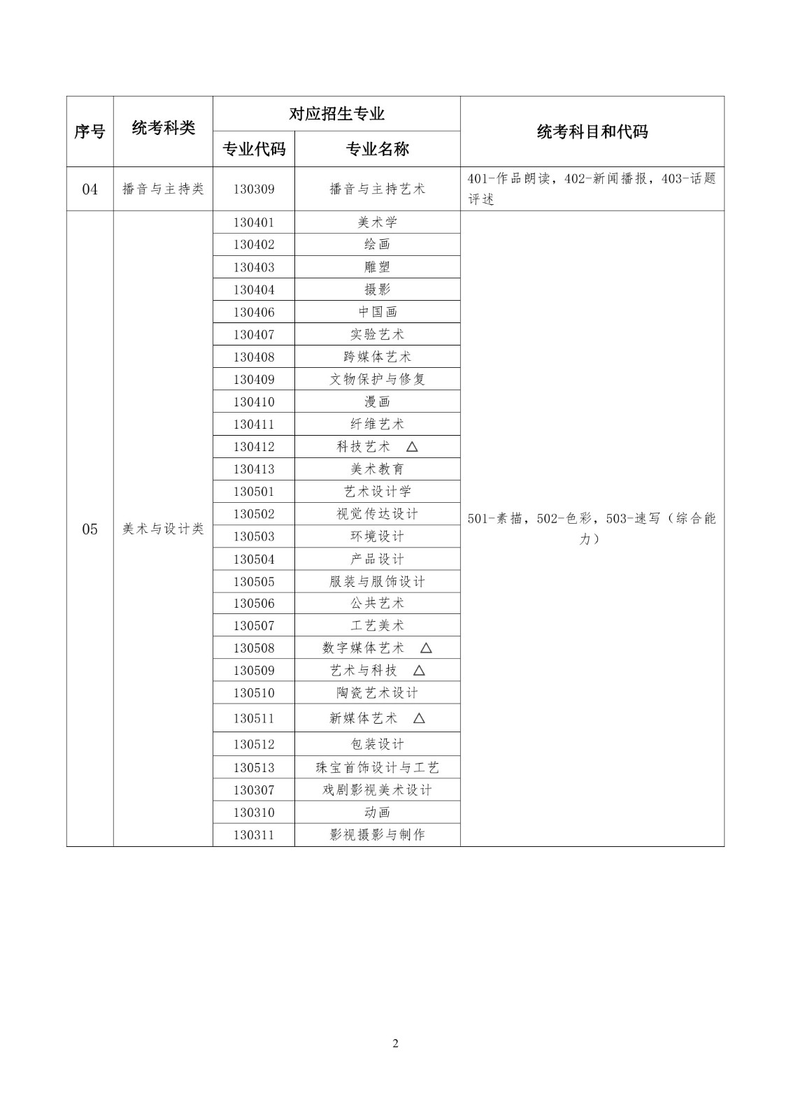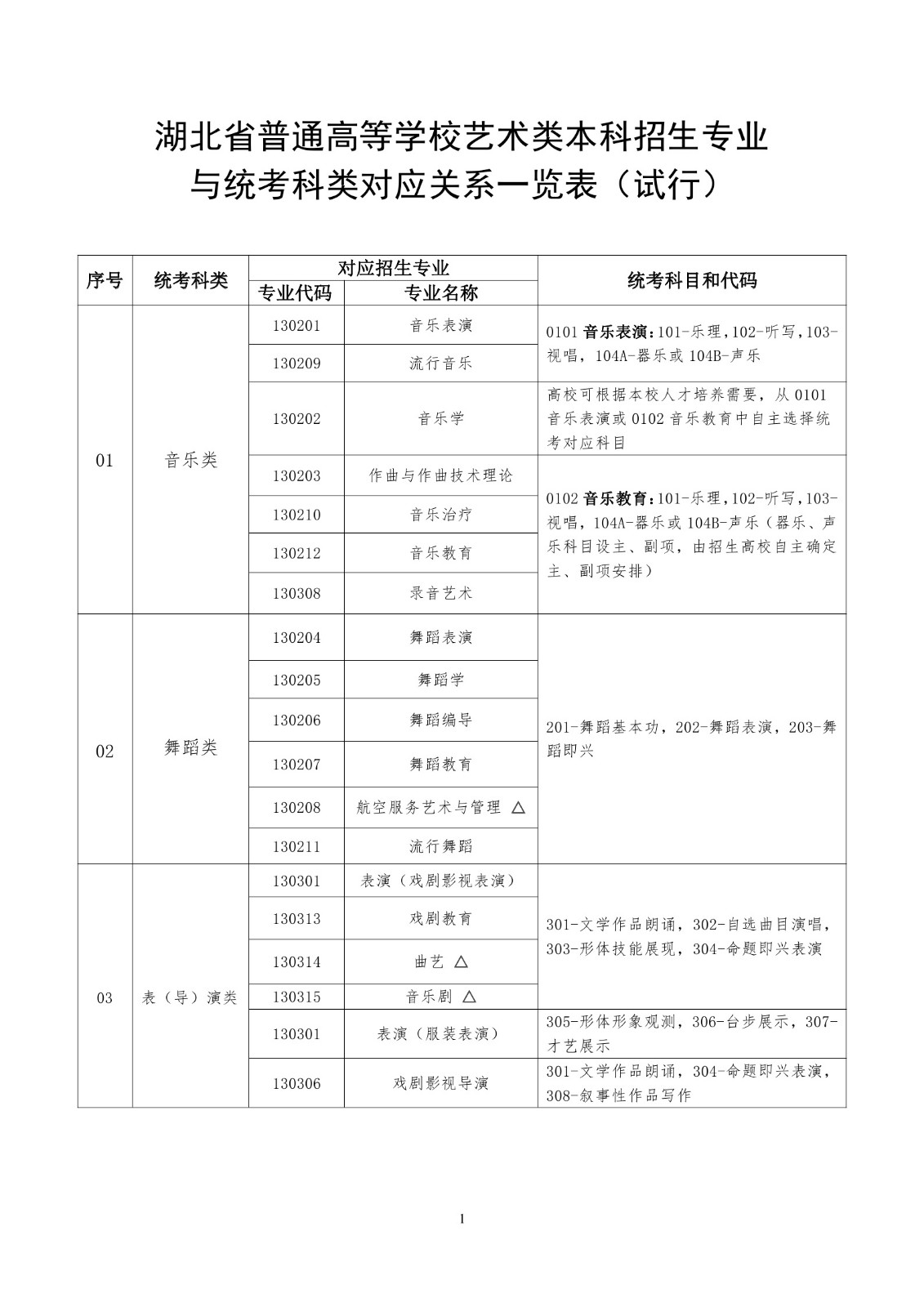 湖北省普通高等學(xué)校藝術(shù)類本科招生專業(yè)與統(tǒng)考科類對(duì)應(yīng)關(guān)系一覽表