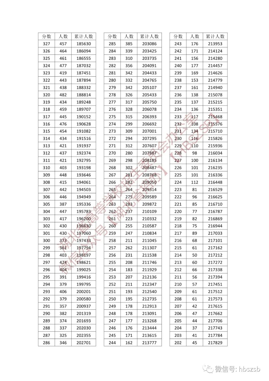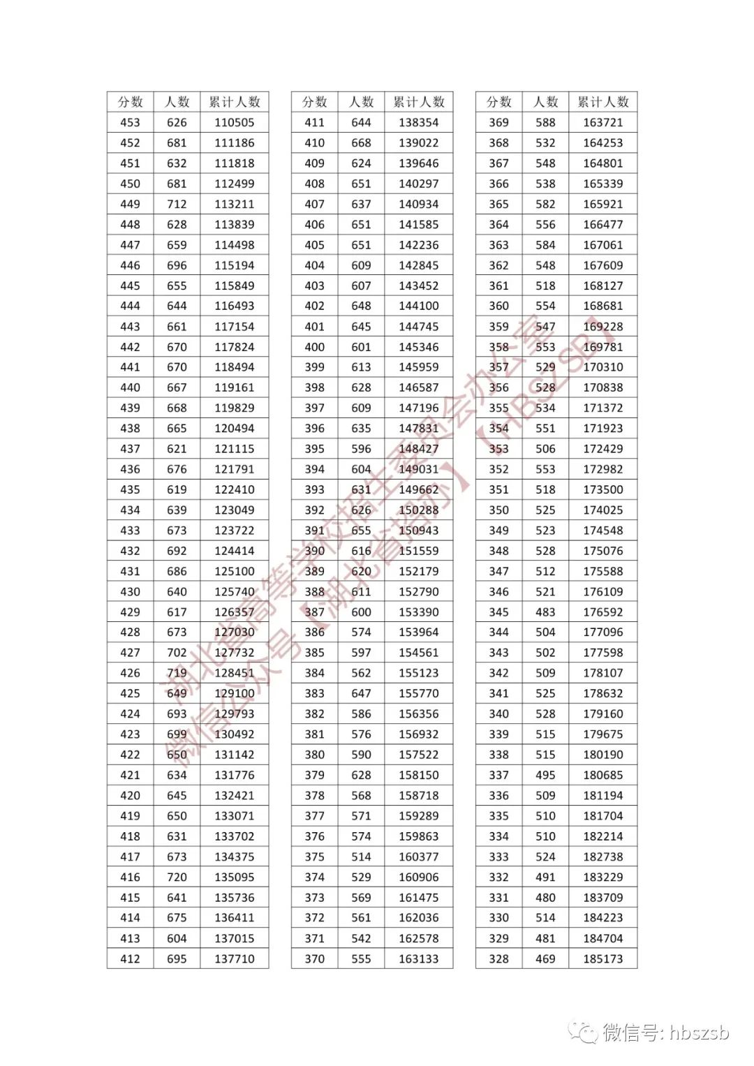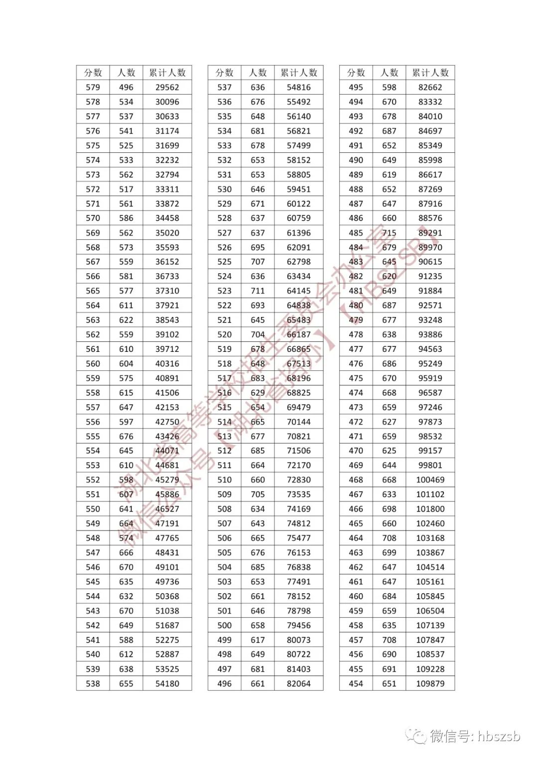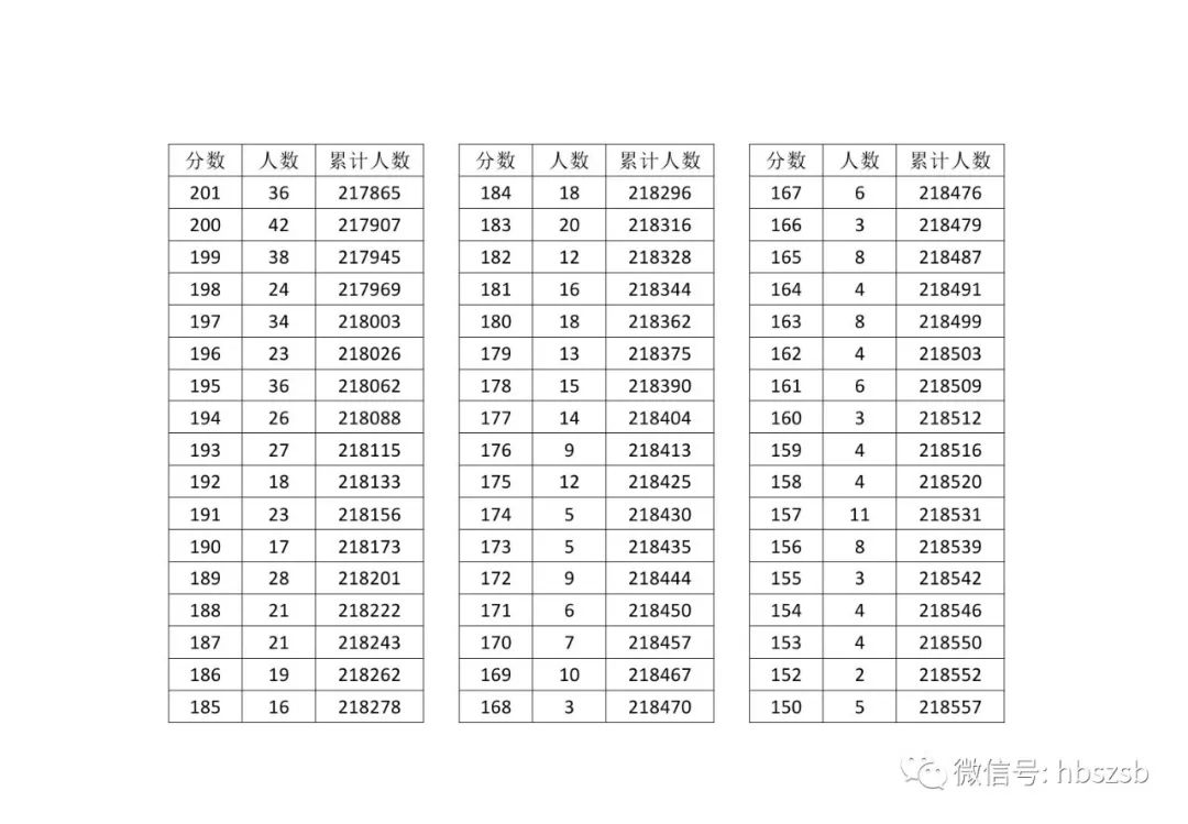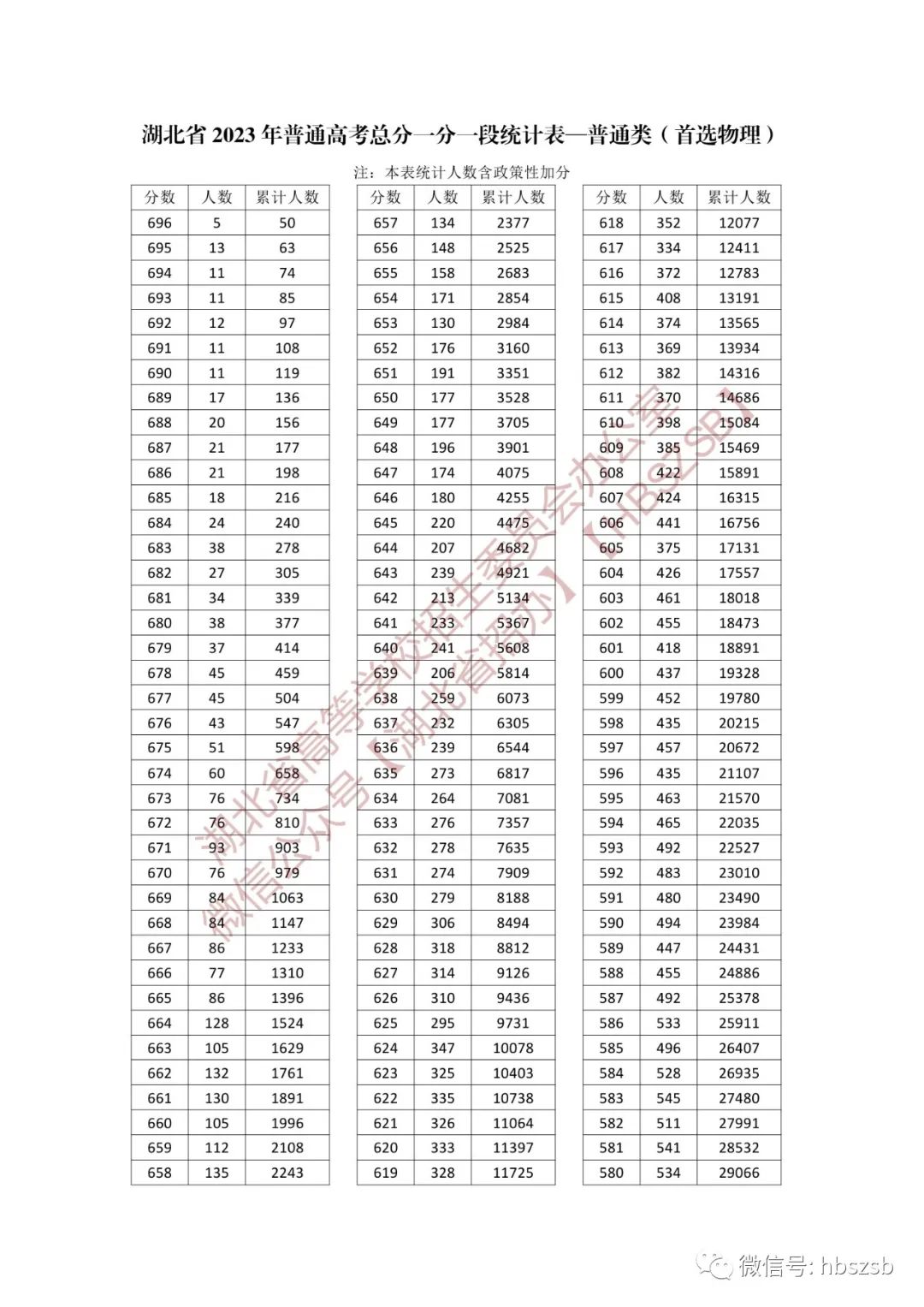湖北省2023年普通高考總分一分一段統計表 首選物理