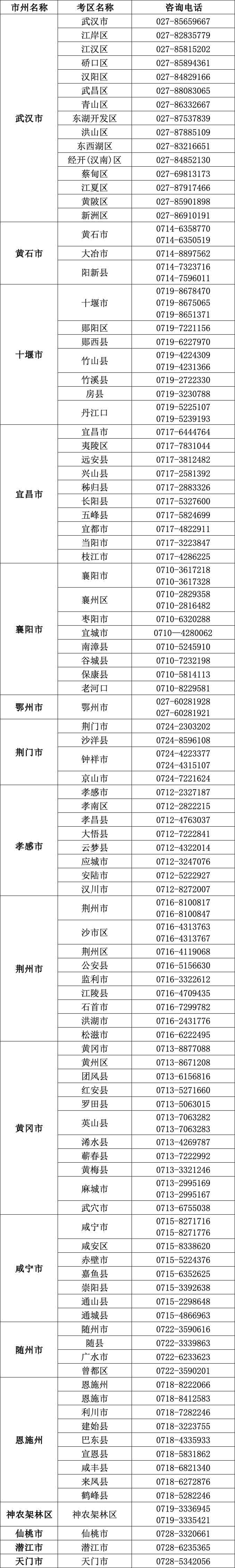 2025年湖北省各市(州)考區普通高考報名咨詢電話